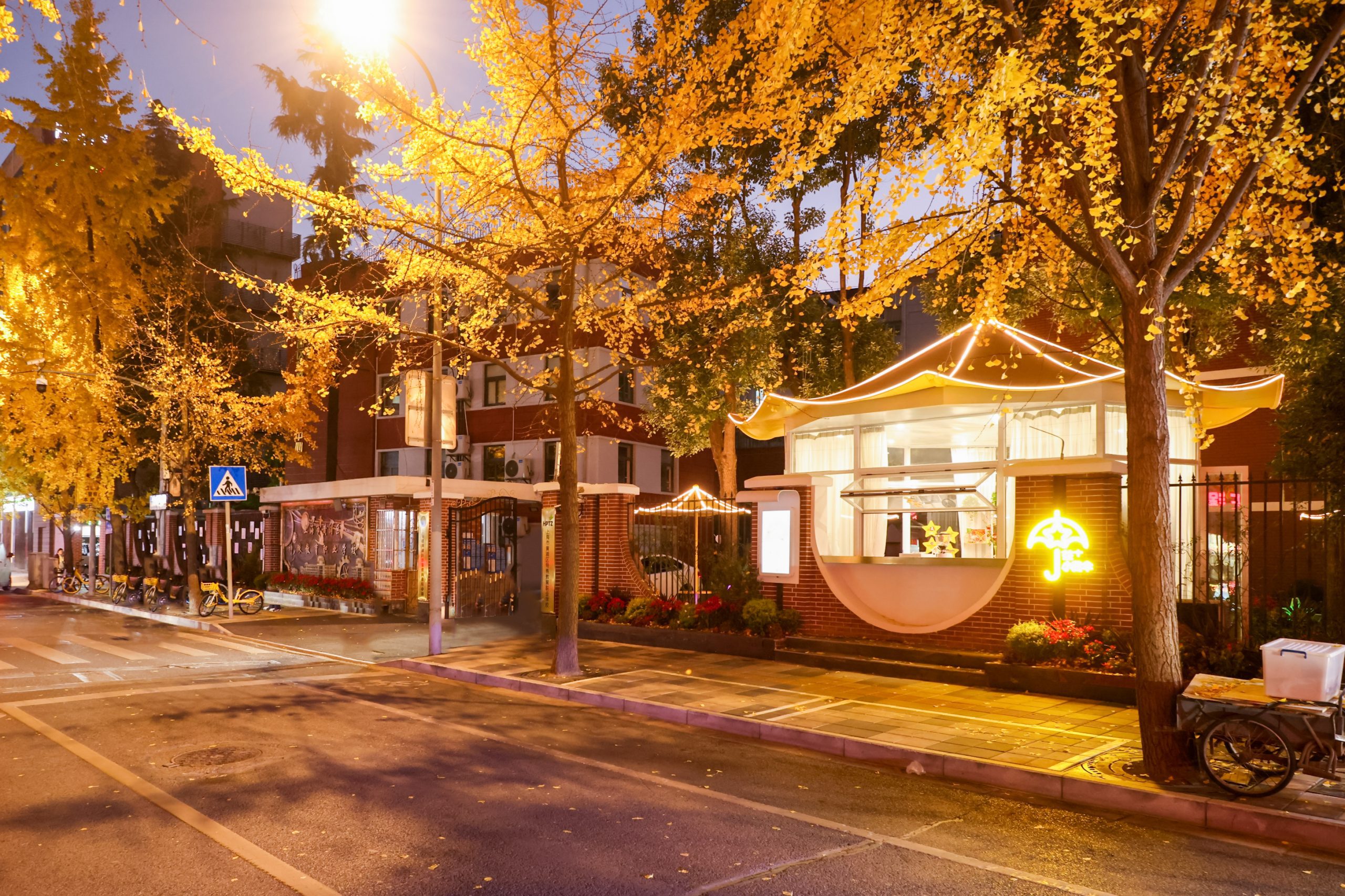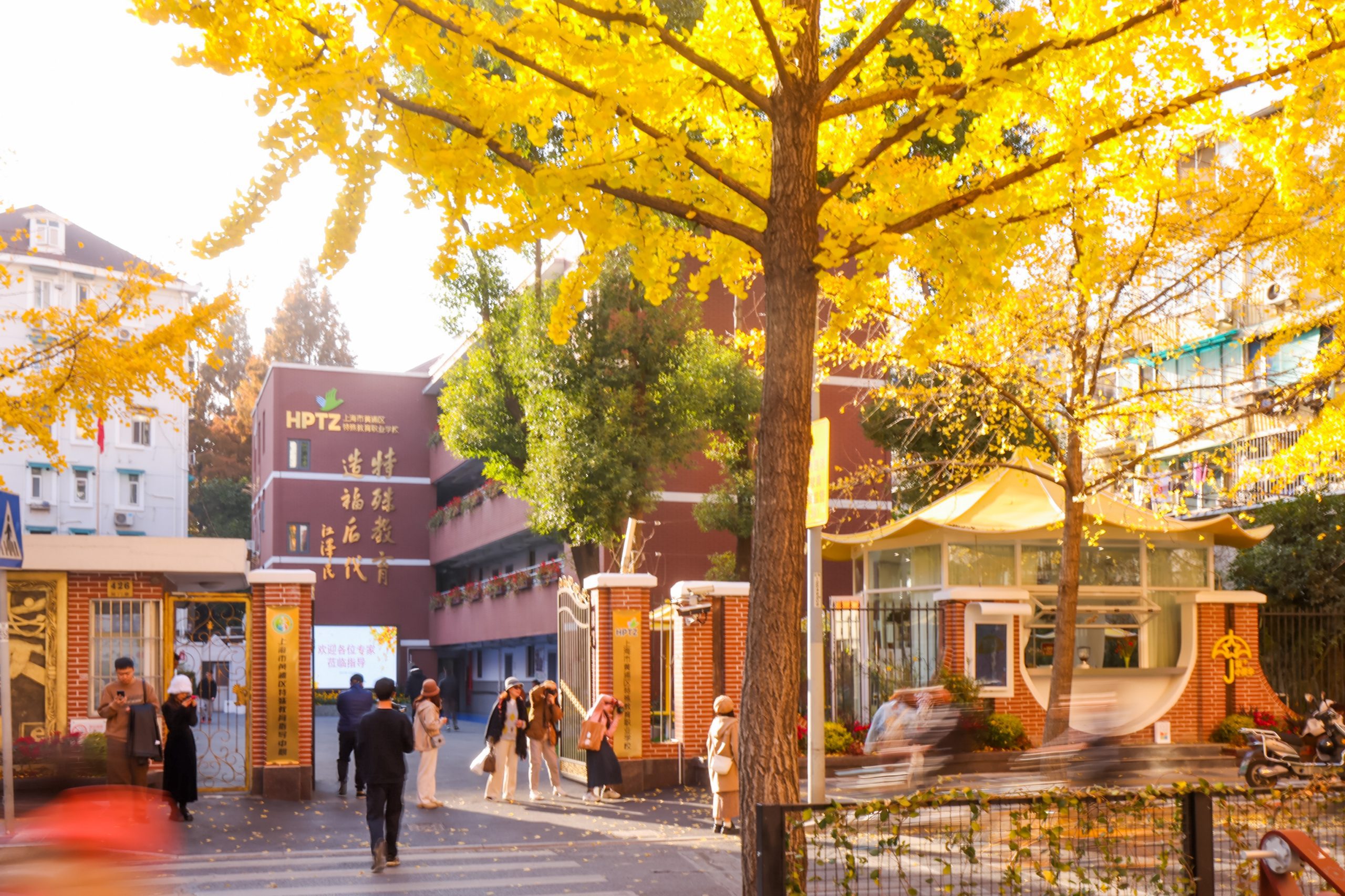 以“伞”为设计元素,寓意“保护与安全”及“支持与呵护”,为特殊教育学生提供社会关爱与支持。采用暖黄色调,与局门路历史文化及秋日银杏叶相呼应,营造温馨友善氛围。