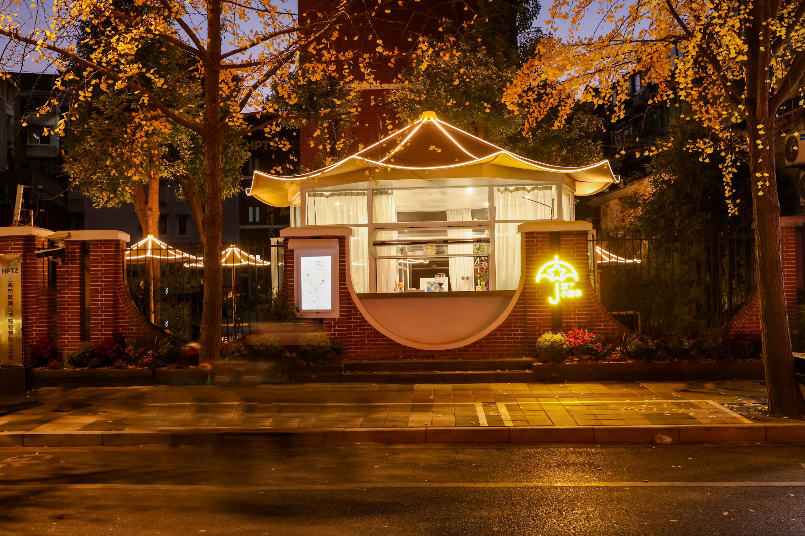 In September 2023, atom team was honored to be entrusted by Wuliqiao Sub-District Office of Huangpu District People's Government to participate in the design of practical classroom building space of Huangpu District Special education Vocational School, and jointly build "Yi + Xiaohuang Umbrella Course Practice Base". The main element of the design is "umbrella", symbolizing "protection and safety" and "support and care", which aims to provide social care and support for special education students. The warm yellow tone echoes with the history and culture of the gate road and the autumn ginkgo leaves, creating a warm and friendly atmosphere. The main body of the space is equipped with Windows, which is convenient for the school to hold public welfare sales activities, display students' practical achievements, and become a window for dialogue with the society.