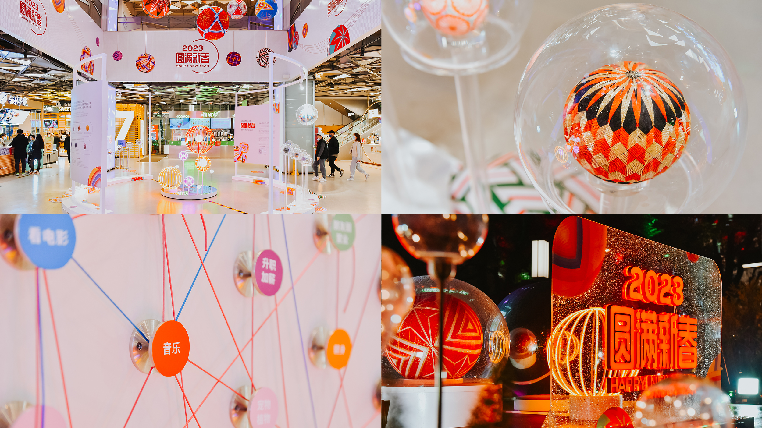 2023辞旧迎新之际,atom以传统手鞠球造型为灵感,为上海大宁国际广场设计新春美陈。点线交织,将大宁与顾客连接、与商家连接。旧年与新年连接,更是情感的连接,而大宁国际就是生活的核心,成为了周边居民生活中不可缺少的一部分。新的一年,愿人们在这里事事圆满。