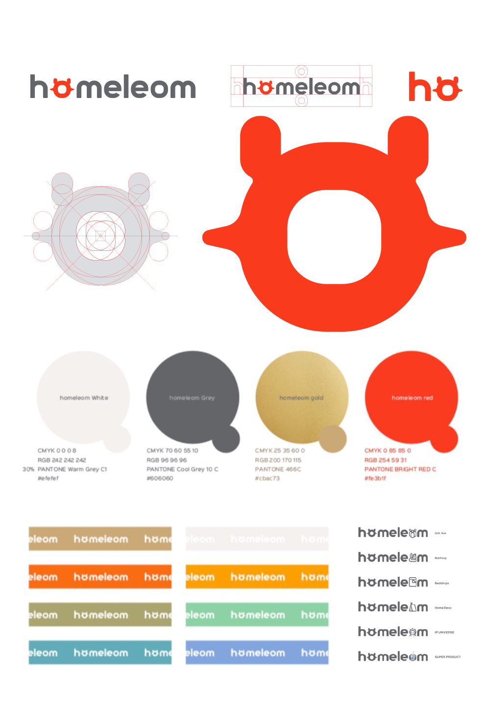 ATOM为品牌创造的O图形的形状蕴含着发髻中国娃娃的外形、鲤鱼的鱼嘴形状、以及宇宙星球的形状三重含义,合一成为。一个简约现代的联想丰富的图形,将会成为homeleom品牌的超级记忆符号,沿用在品牌推广/产品以及产品包装/渠道销售物料中,强化品牌的视觉识别度。