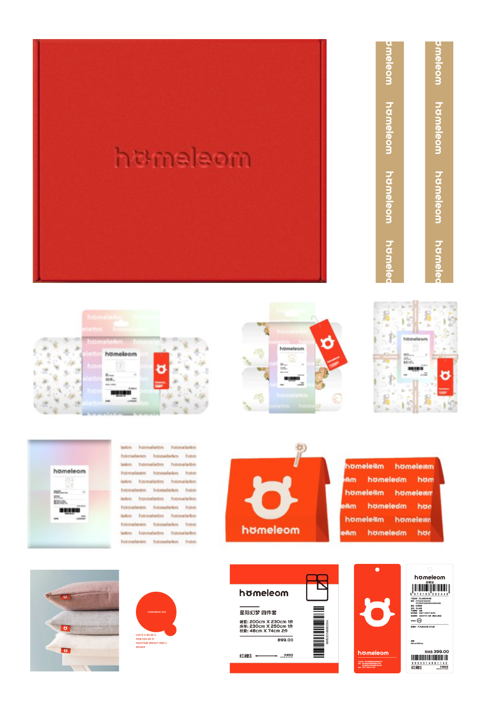 The shape of the O-shaped graphic created by ATOM for the brand embodies the three fold meaning of the shape of a Chinese doll with a bun, the shape of a carp's mouth, and the shape of a cosmic star, integrated into one. A simple, modern, and richly associative graphic will become a super memory symbol for the homeleom brand, and will be used in branding / product promotion, as well as product packaging / channel sales materials to enhance the brand's visual recognition.